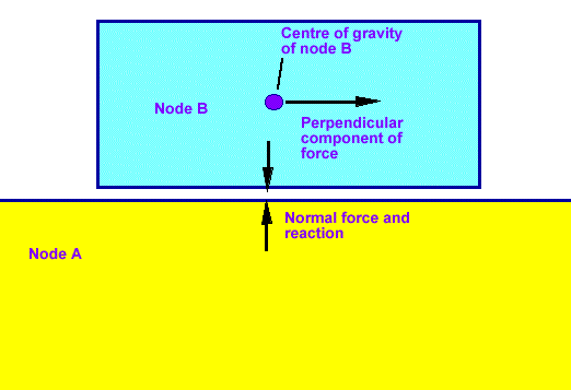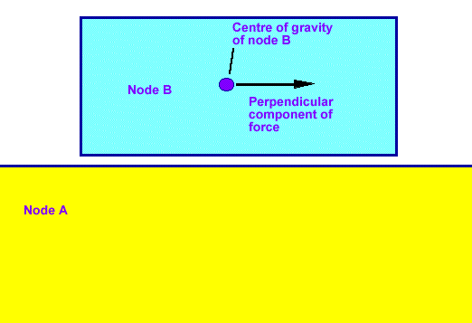 What happens if we now add another force normal to the surfaces tending to push the nodes together (assume node A is fixed and there is an equal and opposite reaction normal to the surface). What effect will this have on the perpendicular acceleration?