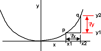 Δx/Δy = (y2 - y1) / (x2 - x1)