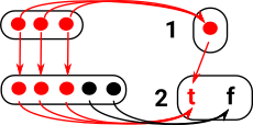 However we can define a subset with a map going out of X. This maps onto a two point set {f,t}. Those elements that are in the subset map to 1 and those that are not map to f. This is called the characteristic function. So in the case of set Ω is a 2 element set like Boolean algebra. The logic of a Topos is not necessarily Boolean logic, it is constructive (intuitionistic) logic as described on the page here. Its only the true elements that commute. |