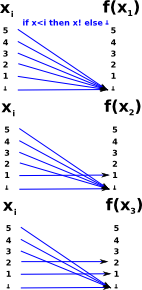 ExampleThis example illustrates a least upper bound although the function is not defined in a recursive way. We define a chain of functions fi: f1,f2,f3... So fi The least upper bound is the factorial function: x->x! |