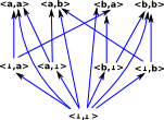 On these diagrams the purple arrows represent the underlying relation and the blue arrows represent the 'less or equally defined' relationship.